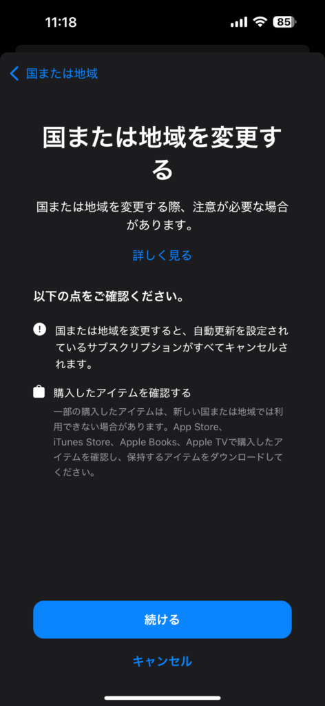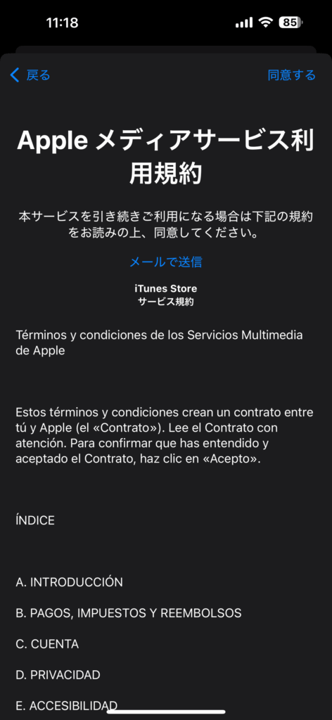 国変更を押すと利用規約が出るので同意して「スペイン」を選択